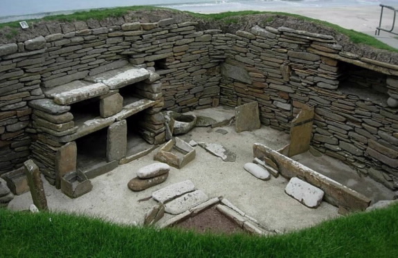 They began building Skara Brae by carving into the midden, forming the new houses and passageways. Once completed, flagstones were brought in and placed along the interior walls giving structure to the rooms.