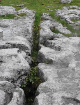 Glaciation and wind and rain erosion have formed limestone pavements with deep crevices known as ‘grykes’.  The porous rock is easily penetrated by rainwater, which has gouged out an extensive cave system beneath the rocky plateau.