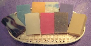 Melt and pour soap base is carried at all most all large craft stores and you can get all kinds, goat milk, olive oil, and suspension blends to hold the herbs in place, to name a few. You can use it as needed, and as long as it’s not exposed to a lot of humidity it keeps well. If you are only buying it for personal use, a pyrex bowl and your microwave are really all you need, and the tins for bite size muffins work great for a mold. If you want to customize them there are all kinds of molds available.