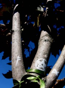 Find a tree that resonates with you.  Maybe you just think it is pretty, maybe you like the shape of it, or you have a special kinship for a certain type of tree as you associate it with positive things.  Think about something you would like to bring into your life, such as prosperity, stability in a relationship, protection for yourself or loved ones.  Spend as much time as you’d like thinking about your needs, sort of “telling” them to the tree with your mind.  Think of the desired outcome.  See it as if you already have it.  Send this vision to the tree.  When you are ready, take some water-based paint or chalk, and draw upon the tree’s bark a symbol of your wish.  This can be a rune, a drawing, even a word.  Then take a ribbon or string and tie it around one of the branches.  As you tie the knot, know that your intent has been taken into the tree and affirm to yourself and the elements that it is done.