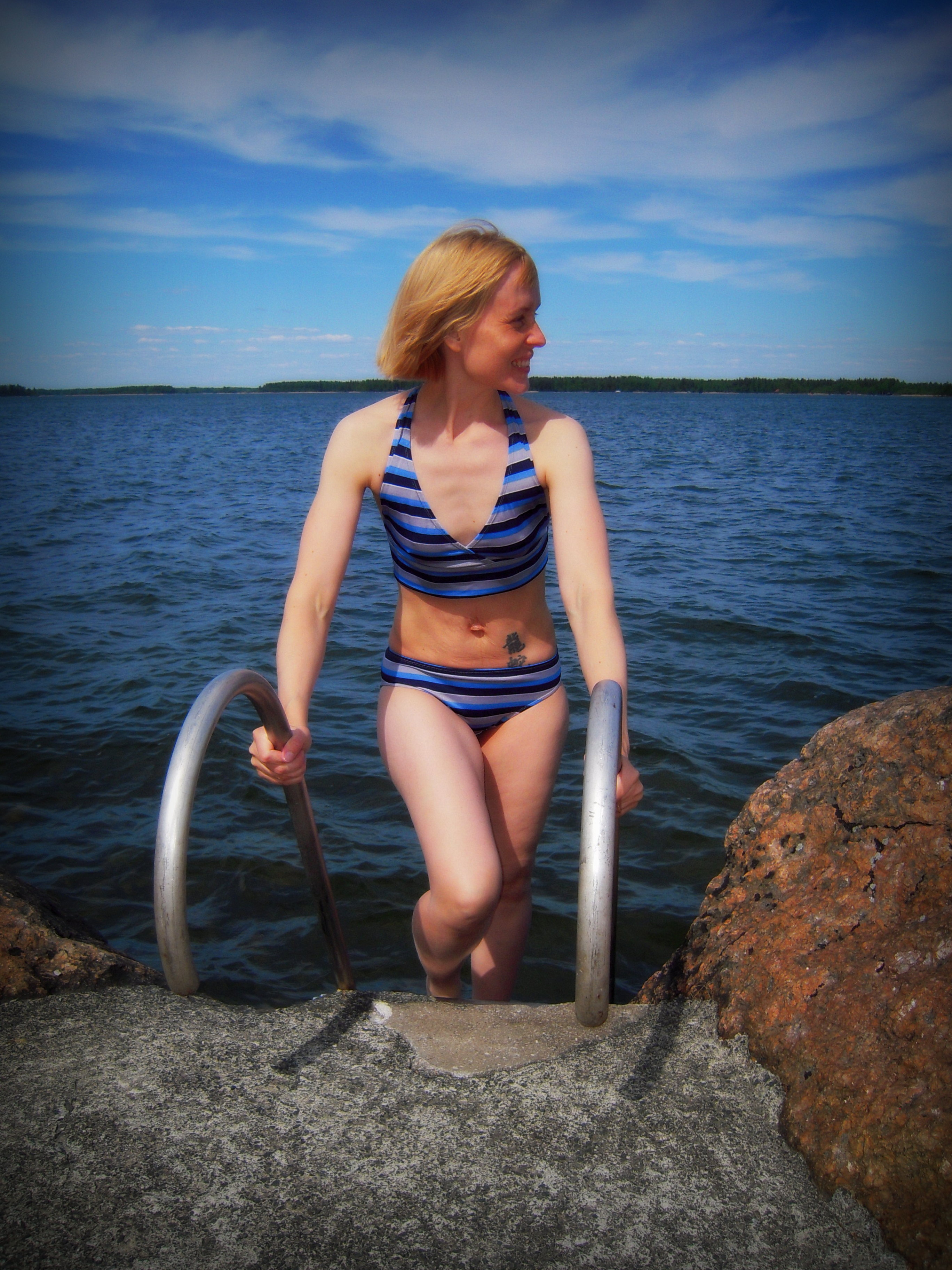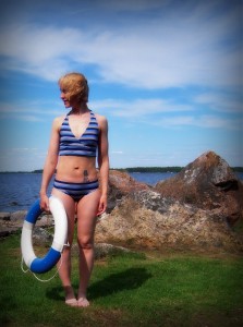 The biggest problem with store-bought bikini for me is the bottom. It always seems to crawl up somewhere it shouldn´t, and I just hate it. But here, in my home-sewn version, I was able to adjust it more fitting to my pear-shaped body. The bottom simply stays in place better, and gives me the freedom to move around.