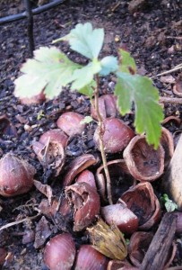 I planted the tiny Oregon Grape into the new garden, but she looked like she was barely hanging on. Part of me considered putting her out of her misery and adding her to the compost, but I decided to leave her alone. A week later, her one remaining leaf dropped and she looked like a bare twig…still, I left her be. I was happily surprised when after several weeks, six new leaves appeared. And so it continued throughout the summer. Two small wild rose plants and a tiny English Hawthorne, also rescued from an area near my home slated for ‘development’, took root, growing small but lush green leaves with time and nurturing.