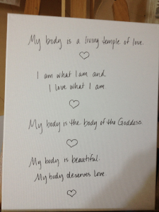 The intent for this piece is establishing a healthy and loving relationship with my physical body. But beyond a personal intent, this piece is dedicated to the energy of loving one’s body as it is and accepting it as a physical temple of the Divine.