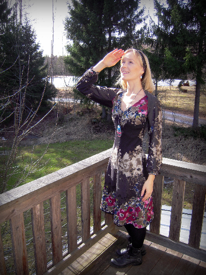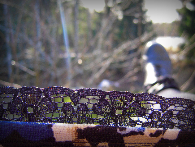 This is as long a dress I can wear. For practicality´s sake that is. The hem ends right at the knees. Any longer, and I would stumple on it if/when kneeling down. The print of the fabric is just perfect for the purpose. The shoes I´m not yet satisfied with, but for now ordinary combat boots will have to do. Man, I wish I could make shoes too!