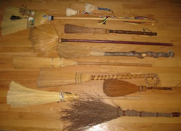 A besom is simply a broom used in a magical way – to cleanse or purify a space. It can be any broom, from the corn brooms with wooden handles found at hardware stores to the lobby brooms with a steel pole and angled nylon bristles found at Ikea to handmade ones of scotch broom with carved handles and crystals.