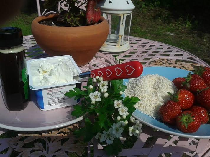 These are one of my most favourite things to make for the fairies at Midsummer. The British Strawberry season is in full swing in June, or if you lucky you may be able to find a local treasure trove of wild strawberries you could use. Sweet and pretty, these yummy summer truffles could be made just as easily with any other variety of berries, and you can tweak the recipe with a few drops of rose water or alcohol if you prefer! If berries are not your thing try making this by replacing the strawberries with some chopped garden mint and some mashed ripe mango, yum!