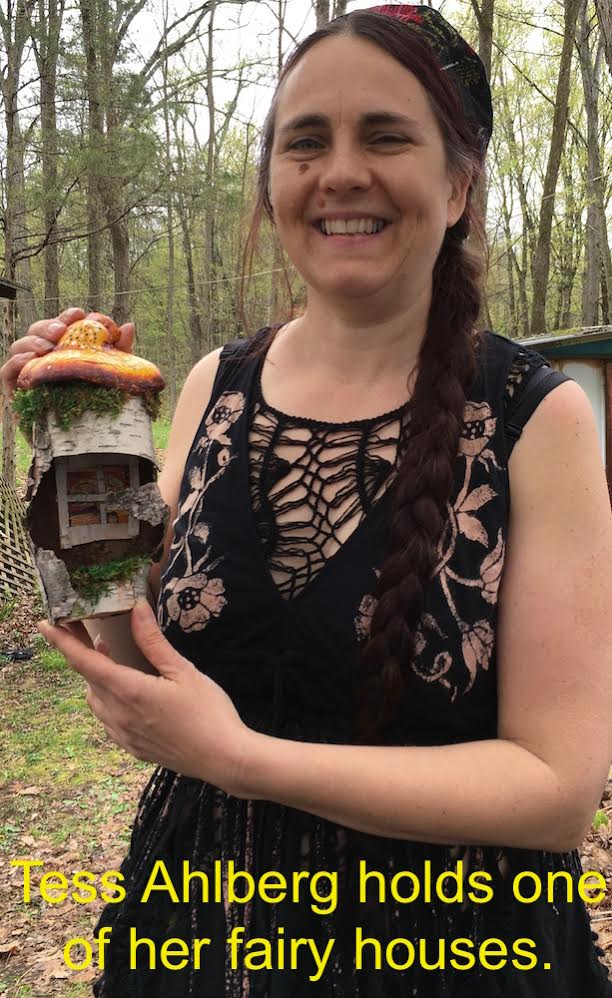 Tess Ahlberg makes houses for them from bark, mushrooms and other gifts of nature.