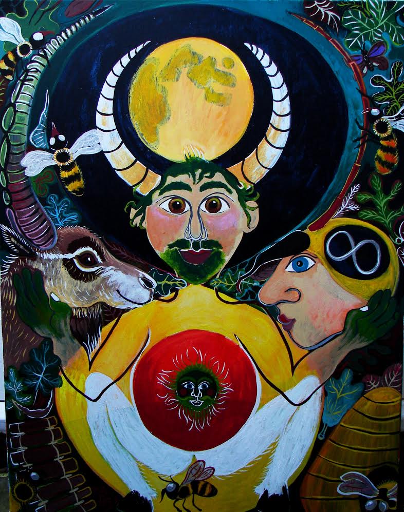 I made this painting in the year 2012. I t was inspired by a powerful dream I had where the ancient god Pan came to me. This painting sold a few years ago, it lives in Switzerland now.