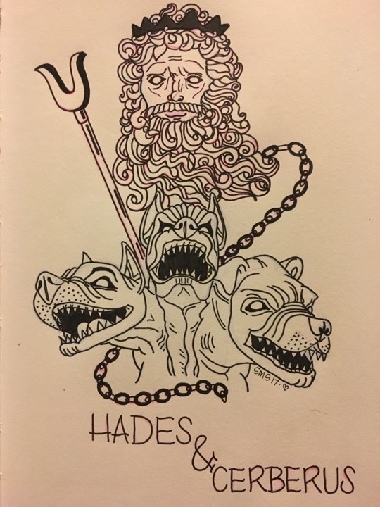 Its darkness makes him invisible. (Some stories credit his invisibility to the helmet he wears.) He is often depicted with an evil smile, wearing a black robe made of souls. He holds a bird-tipped scepter that can cause earthquakes. Hades appointed Cerberus – a three-headed dog – to guard the underworld, never allowing in anyone who was not supposed to be there.