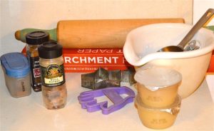 Sprinkle a clean surface with cinnamon and roll out the dough ¼ inch thick. Cut into your favorite shapes. You might use a house for family stability, hearts for love, a hand for healing, stars for success.