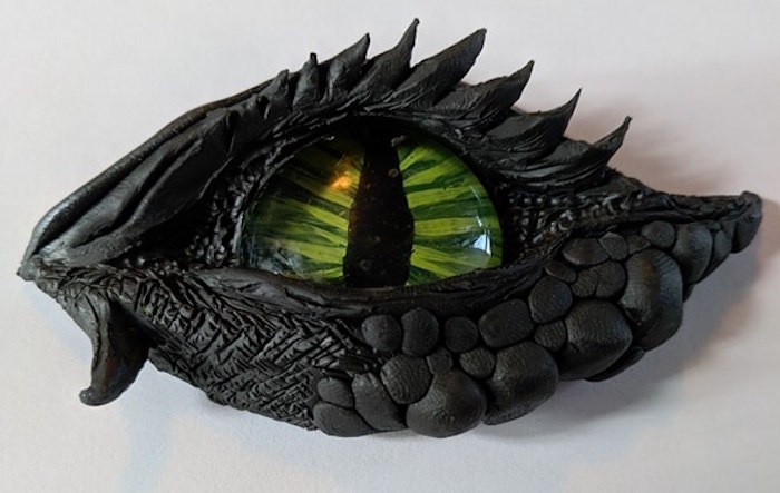 Kerry used black polymer clay that she then painted with acrylics, explaining, “I like the black underneath, because when you dry brush it, it makes the colors pop so the scales stand out.”