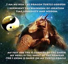She replaced the pillars of heaven with the legs of a great turtle/tortoise so that they would not collapse; Dragons on these pillars guard the path of the sun and the moon.