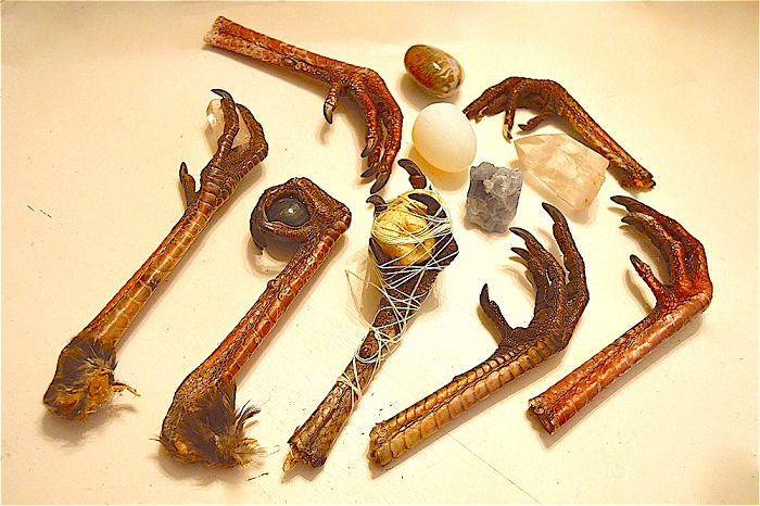 When I received them they were already a couple of days old, but the claws were pliable. I was drawn to having them hold crystals. The shape of some of the polished stones I chose made them unworkable. Thankfully, the pagan store I frequent did not mind me bringing in the legs and holding up crystals to determine what would be a good fit. Certain stones seemed to want certain claws, so I went with it.