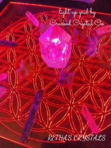 Our Crystals Columnist, Retha, not only covers Protection Stones This Month, In Retha’s Crystal Reflections, but she also Reviews 3 Types of Crystal Grids; Cloth, Wood, and LED Light, and Interviews the Shop Owners!