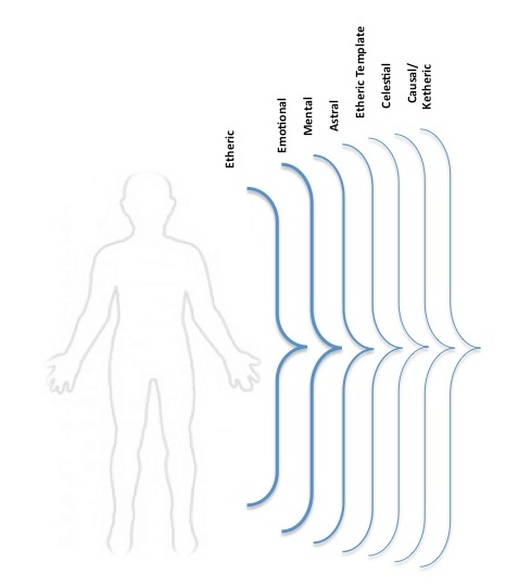 The Subtle Bodies are sheaths of energy that surround us. Depending on the system you adhere to there are seven to twelve subtle bodies, each forming a layer of energy that is composed of the densest to the most refined of energies as the layer extend out and beyond the form and shape of our physical body. The seven layers are thought to be a reflection of the universe and represent the overlay of our energy as part of that of the Universal whole. See the picture below: