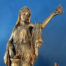 Her temples were located at Olympia and at Delphi. It is said that the source of Her sacred fire was the lava at the center of the Earth, which connected the Oomphalos to Delphi, which was a city of great energy and wisdom. Her festival day was held on June 8th.