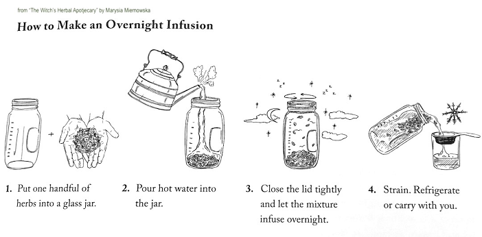Miernowska explains the currents of nature, and offers ways to weave yourself back into this web of life from which most of us have been disconnected. One of the first is to meditate with an herbal infusion to get to get to know a plant, its wisdom, and come to an understanding of how you wish to experience each other. The process helps form an empowered relationship with nature, learning of the great healing medicine it offers. In the book, she also discusses the value of weaving your wild heart and prayers from harvest to bottle to make the medicine more potent.