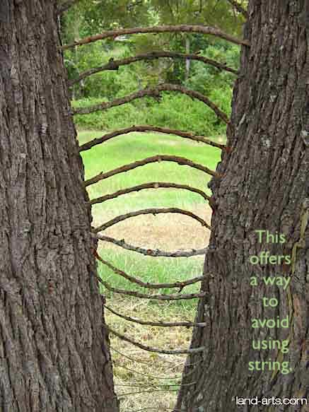 Options for a frame range from a Y-shaped branch to a large picture frame. Using hemp cord, twine, string or yarn, tie one and to a corner or end. Wrap the cord twice around the stick or frame; keeping it taut, bringing the cord to the opposite side, again wrapping it twice around before continuing from side to side, keeping it as tight as possible. Tie off the end with finished.